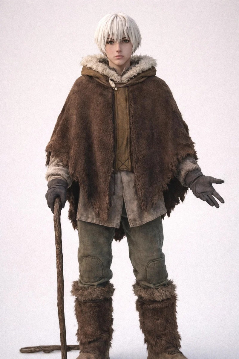 불사 – 주인공이죠. 설원 소년 버전이랑 구구 형 버전이랑 여러 개 만들어봤는데, 확실히 설원 버전이 가장 쓸쓸하면서도 아름답게 나왔어요. 흰 머리카락이 실사로 바꿔도 위화감이 없더라고요.