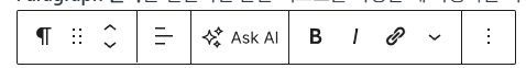 Paragraph 블록은 일반적인 본문 텍스트를 작성할 때 사용하는 가장 기본적인 블록입니다. 대부분의 글이 이 블록으로 이루어져 있어요.