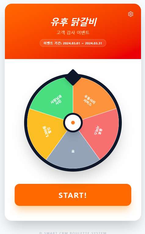 그 이유가 룰렛이면서 그 결과를 SMS로도 보내주는데요. 이 이벤트의 시점이 바로 비수기 때 진행된다는 내용이었습니다. 제 생각에는 영수증 리뷰 시에도 좋아 보였습니다. 게임 요소와 경품, 고객 재유입이라는 삼박자가 맞아떨어졌습니다.