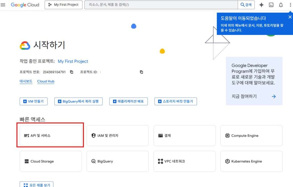 Google Cloud Console에 접속하여 [API 및 서비스] >