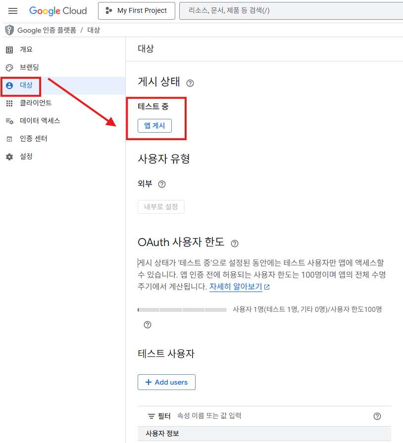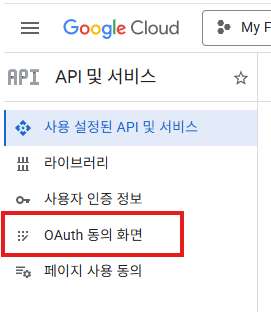 [OAuth 동의 화면]으로 이동한 뒤
