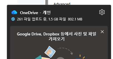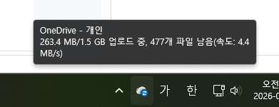 우측 하단에 원드라이브 아이콘이 보입니다. 클릭합니다.