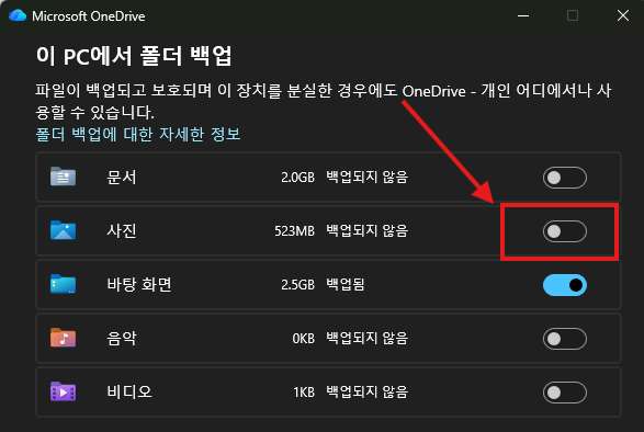 저는 원드라이브 자동 백업 기능을 비활성화하기로 결정했습니다.