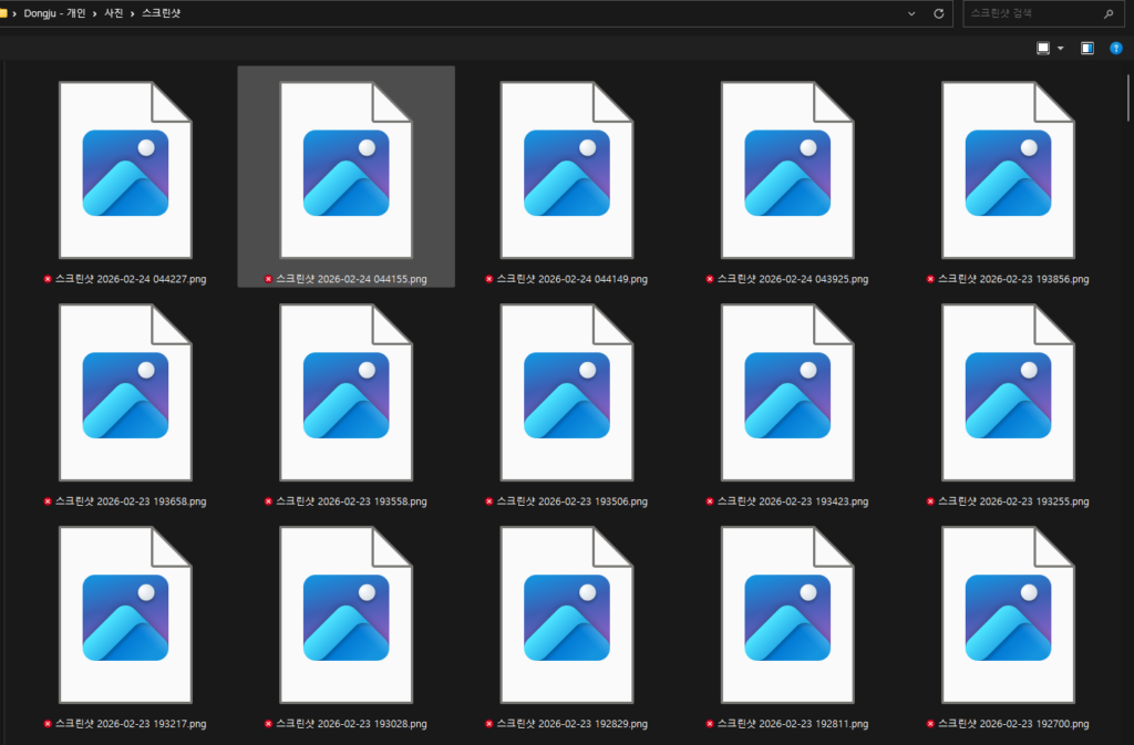 사진에서 보듯이 어느 순간부터 윈도우 파일 탐색기에서 사진 미리보기가 나타나지 않았습니다. 원인은 원드라이브(OneDrive) 백업 기능에 있었습니다.